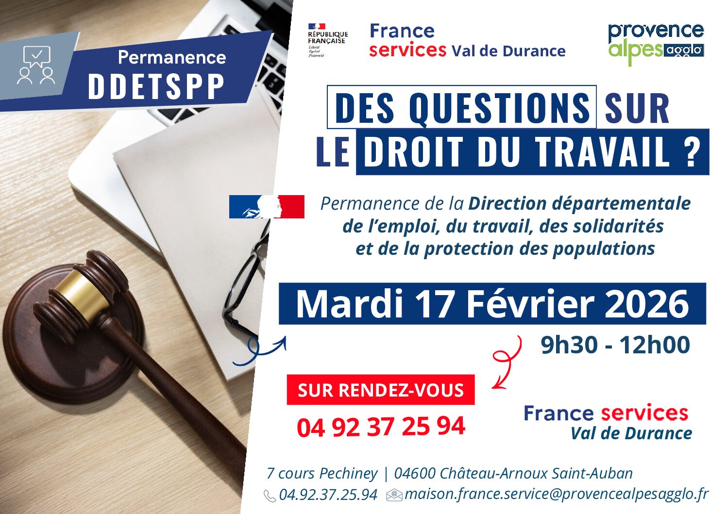 PERMANENCE DDETSPP Le mardi 17 février 2026 De 9h à 12h Dans les locaux de France Services