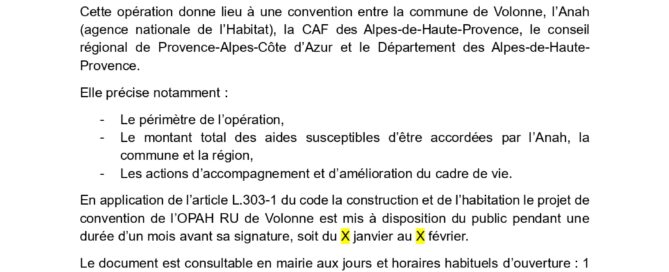 Mise à disposition du public en mairie