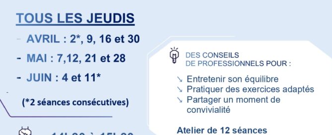 Bouger pour garder mon équilibre En avril, mai et juin, le jeudi A la salle polyvalente de Volonne Ateliers gratuits Inscription à l'accueil de la mairie ou 04 92 64 07 57
